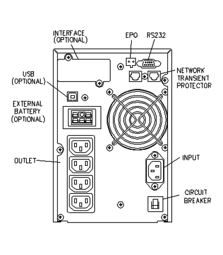 - Slot pour carte SNMP ou Relais. Voir rubrique Produits complémentaires ci-dessous.