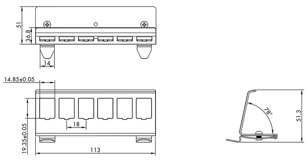 • Modèle un port : 48 (H) x 23 (L) x 51,2 (P) mm.