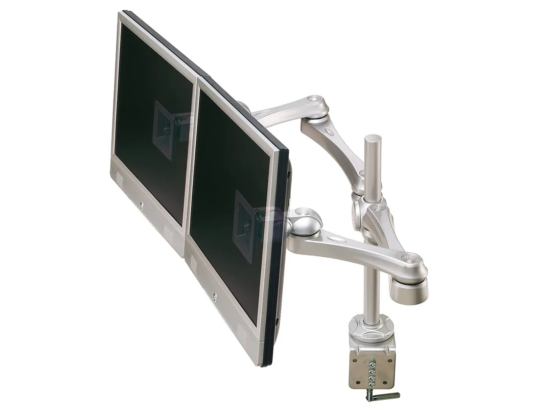 Support pour 2 écrans plats, bras 4 pivots, montage sur table, Roline