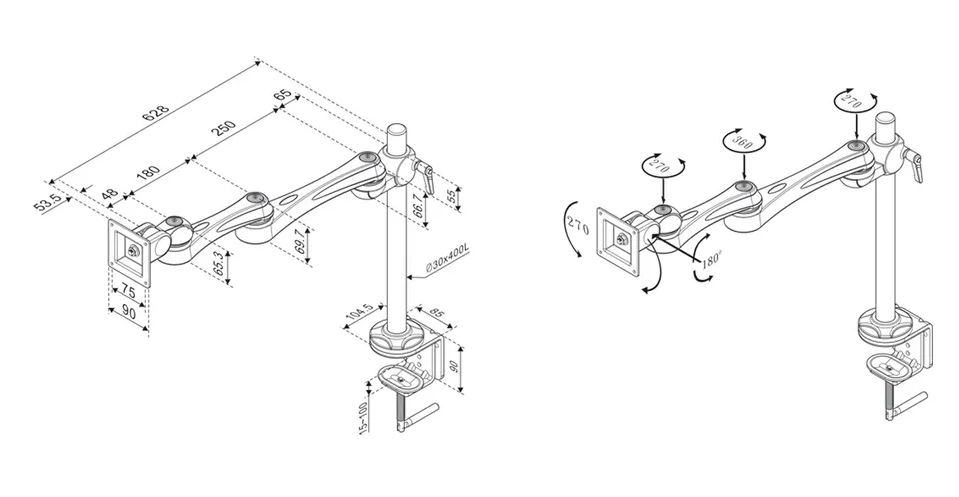 ROLINE – Bras pour écran plat, montage sur table, 4 pivots