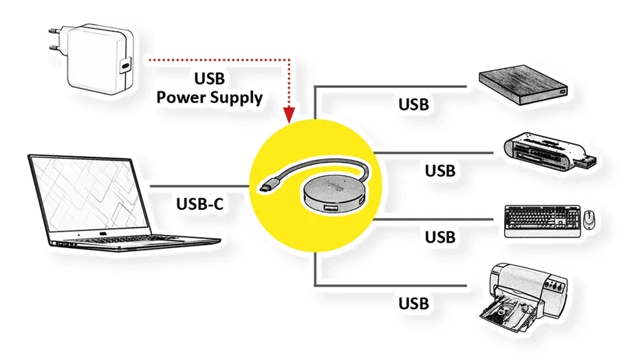 ROLINE – Hub USB 3.0, 4 ports, entrée type C, aluminium